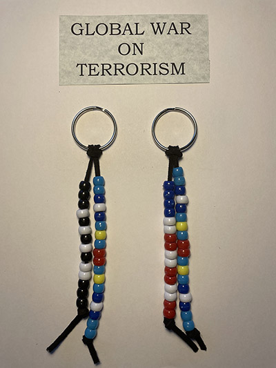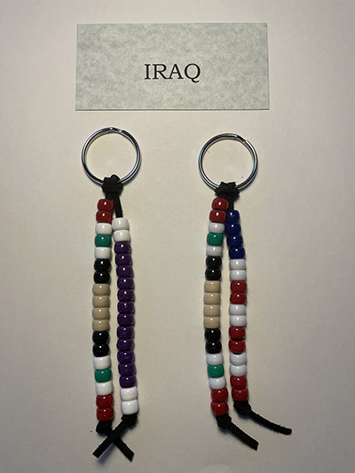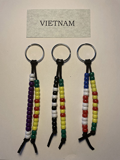 Proudly display your campaign ribbon on the side lace of your vest or as a keychain. Each keychain has an additional beaded choice of POW/MIA, Purple Heart or American Flag.