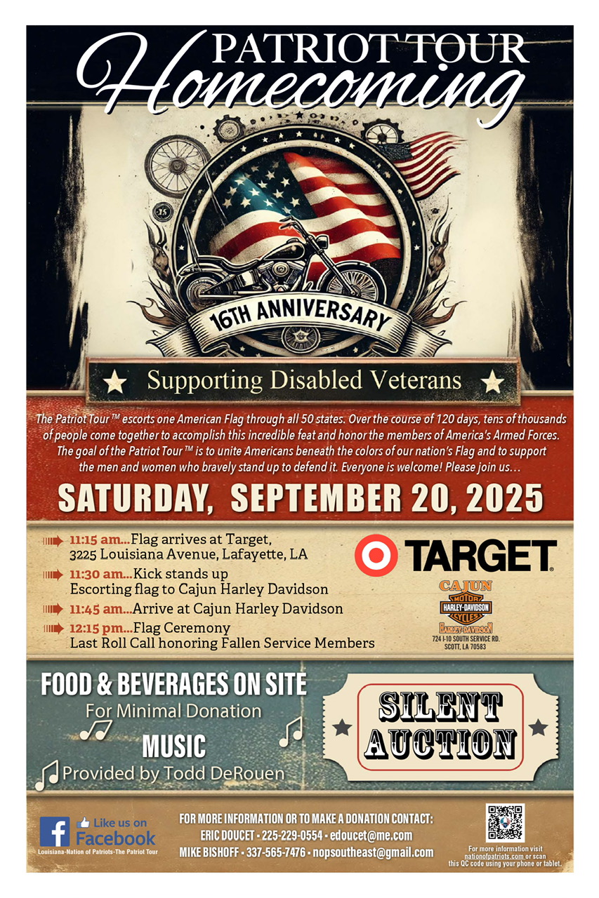 11:30am - Kick stands up, escorting flag to Cajun Harley-Davidson